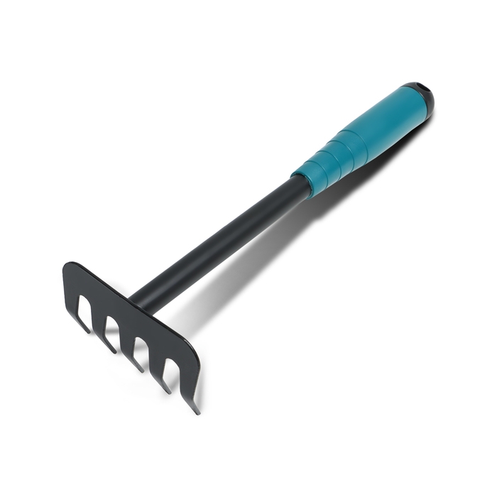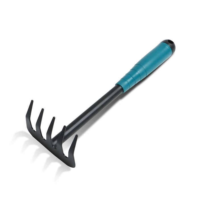 Грабли малые, прямые, 5 зубцов, длина 40,5 см, металл, металлическая рукоять с резиновой ручкой, Greengo