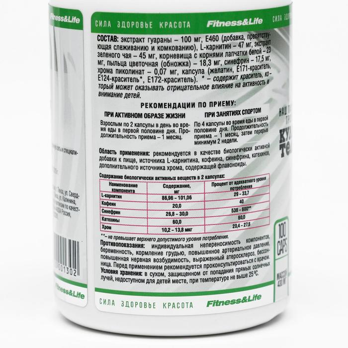 L-карнитин, Корни лапчатки белой, Пыльца цветочная, Экстракт гуараны, Экстракт зелёного чая