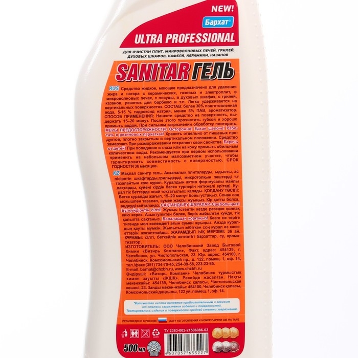 Универсальный гель для чистки бытовых приборов от Ultra Barhat действует быстрее и сильнее других. Оно удаляет жир, нагар и копоть. Подходит для разных поверхностей, придаёт блеск вашей кухне.