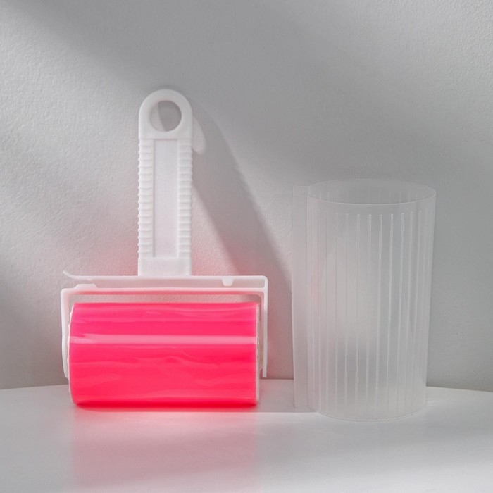 Ролик для чистки одежды в футляре силиконовый, 17×11×6 см, цвет розовый