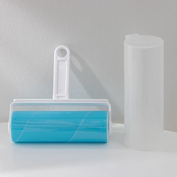 Ролик для чистки одежды в футляре, 18×17,5×6 см, пластик, силикон, цвет голубой