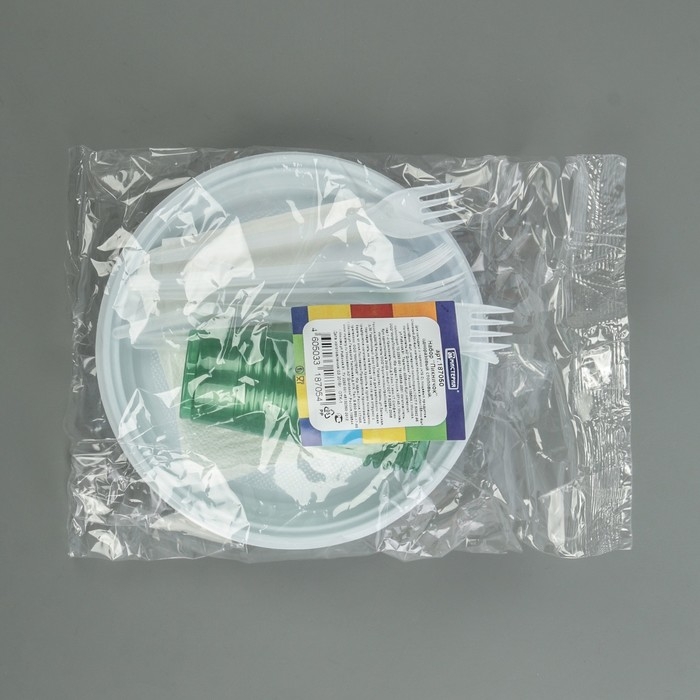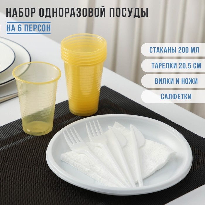 Набор пластиковой одноразовой посуды на 6 персон «Пикничок», цвет МИКС