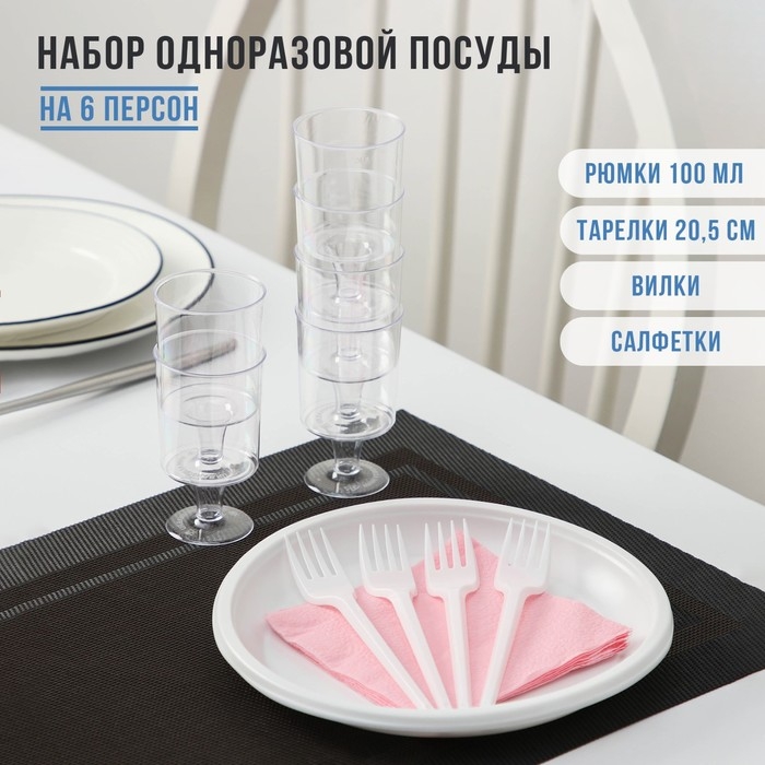 Набор пластиковой одноразовой посуды «Праздничный», 6 персон, цвет МИКС