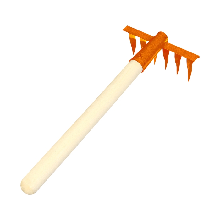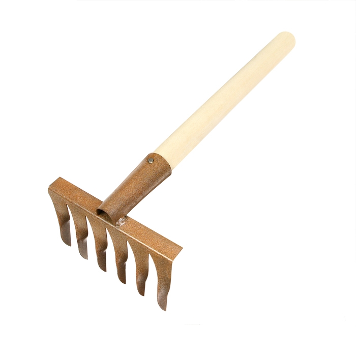 Малые прямые грабли, 6 витых зубцов, длина 31 см, металл, деревянная ручка