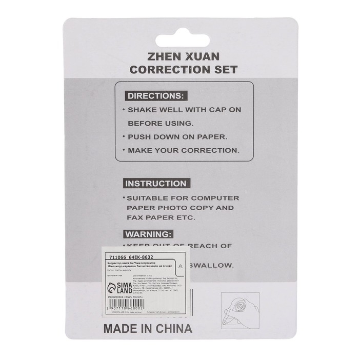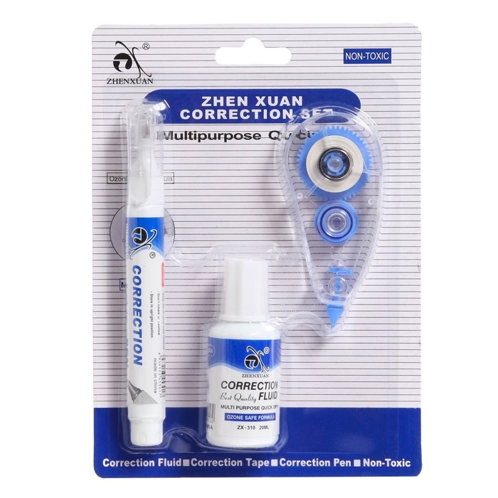 Корректор-лента Zhen Xuan 6 м х 5 мм, с корректором 18 мл, с корректирующим карандашом 7 мл, металлический наконечник, на основе растворителя