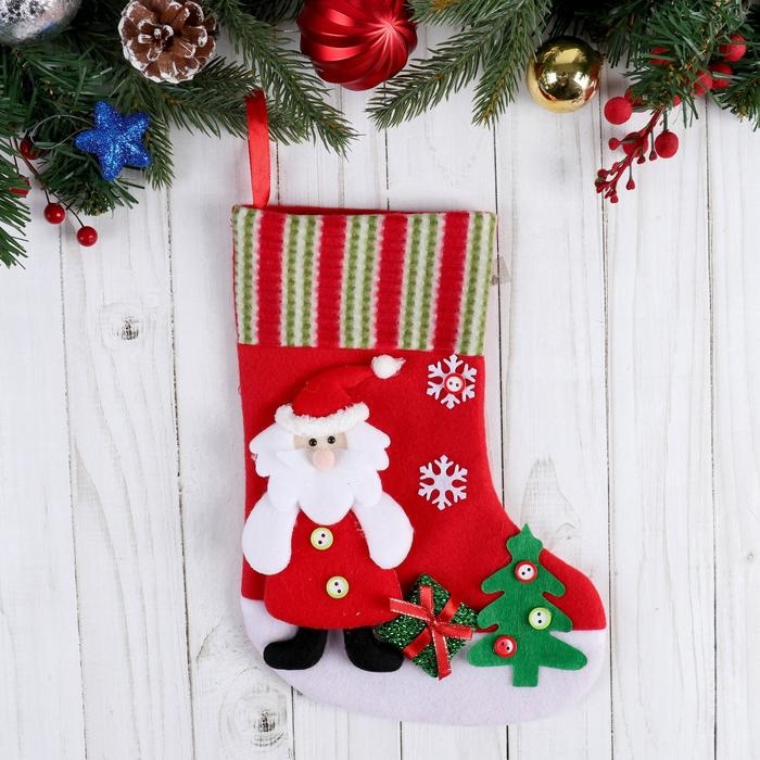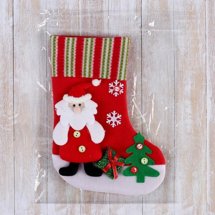 Носок для подарков "Дед Мороз у ёлочки" 26х18 см, красный