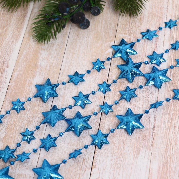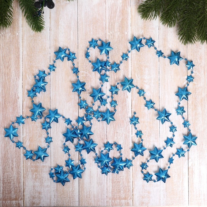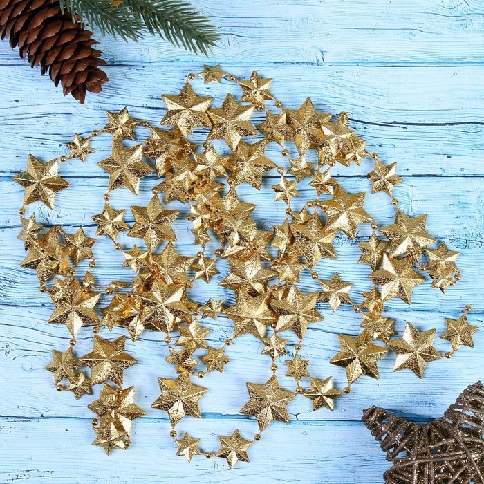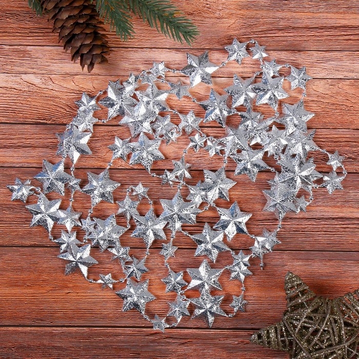 Бусы на ёлку 2,7 м "Рельефные звёзды" микс