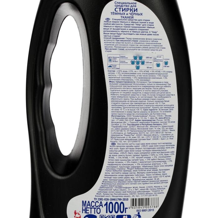 Жидкое средство для стирки Help, для тёмных и чёрных тканей, 1 л
