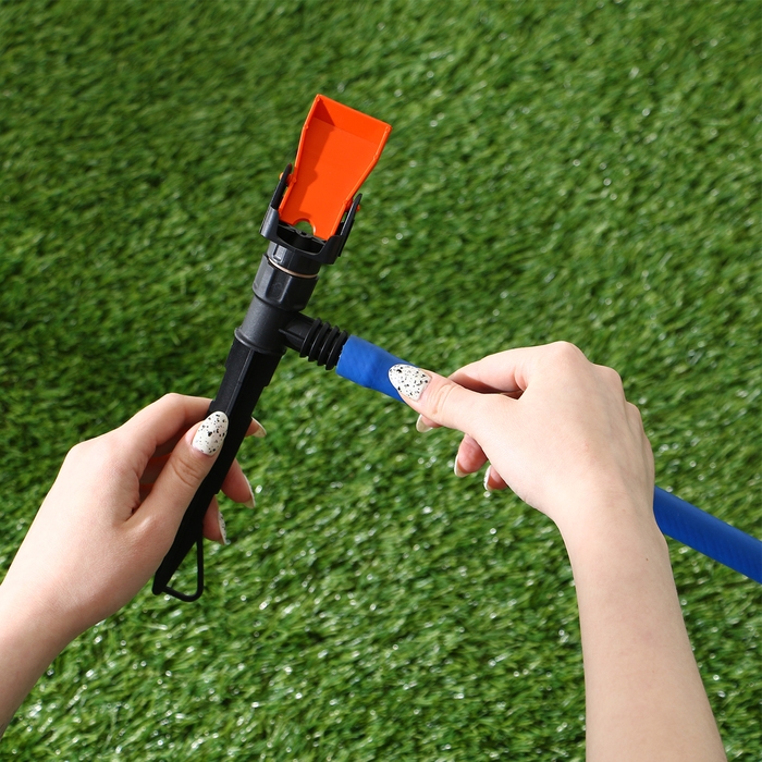 Распылитель предназначен для работы со шлангами 1/2 и 3/4. В комплект входит штуцер для подсоединения распылителя. На ножке распылителя расположены оригинальные ребра, надёжно фиксирующие распылитель.