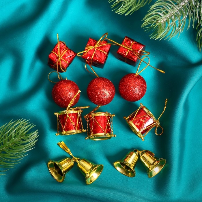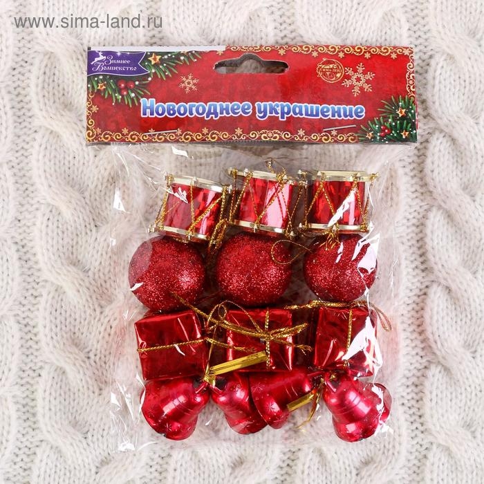 Декор в едином стиле сделает новогоднее убранство гармоничным . Набор украшений пластик 11 шт "Лавра" (3 подарка, 2 колокол, 3 шара, 3 барабана) микс — это готовый наряд для ёлки, и прекрасные отдельные украшения. Сделайте праздник ярким!