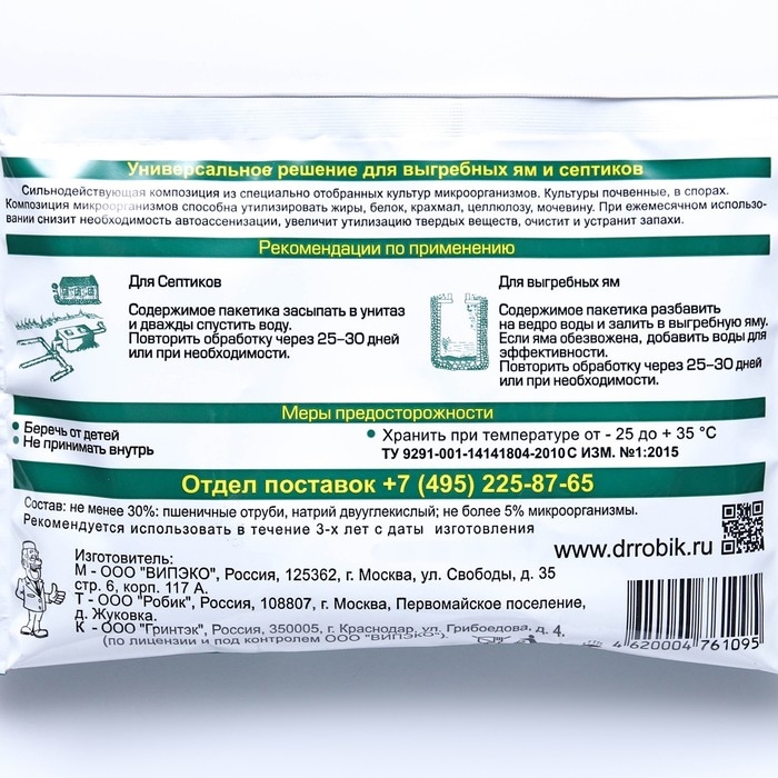 Средство для выгребных ям и септиков "Доктор Робик" 109, 75 гр