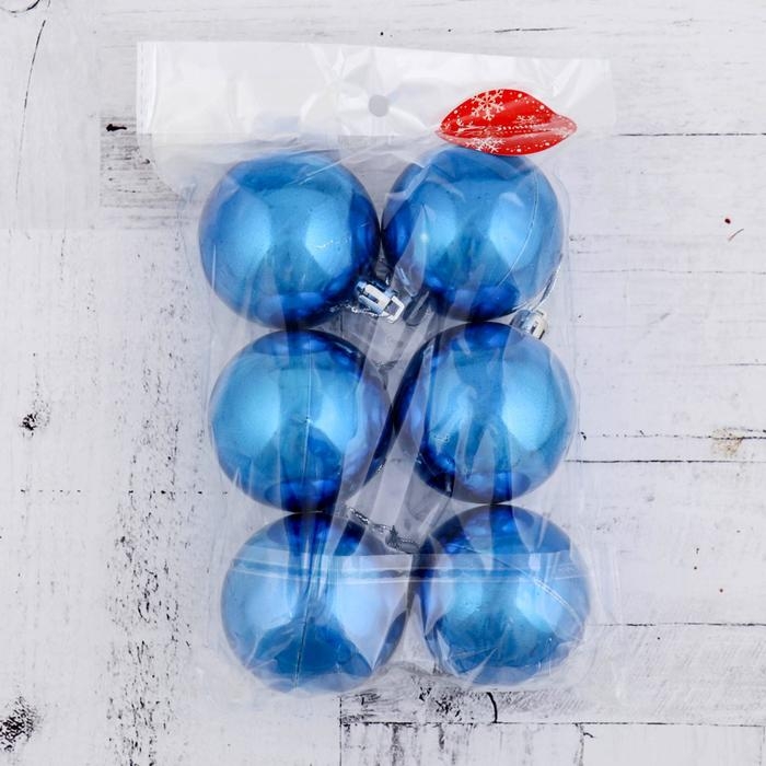 Набор шаров пластик d-6 см, 6 шт "Винтажный глянец" синий