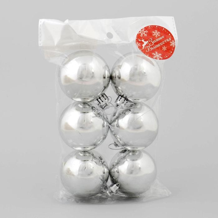Набор шаров пластик d-6 см, 6 шт "Глянец" серебро