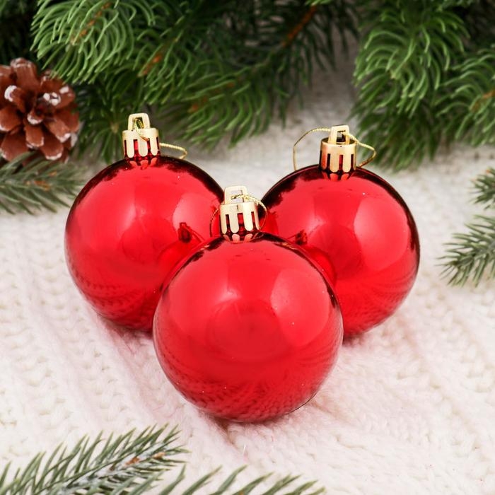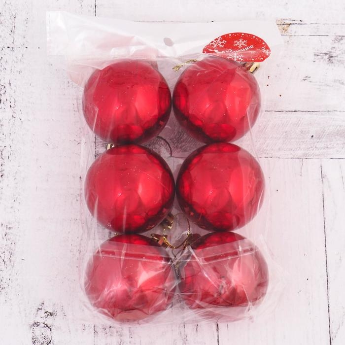 Набор шаров пластик d-6 см, 6 шт "Глянец" красный