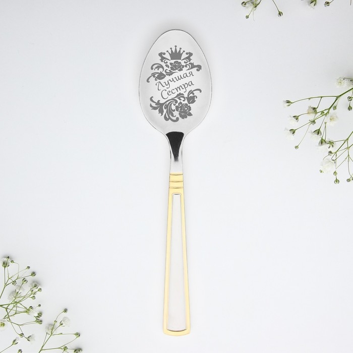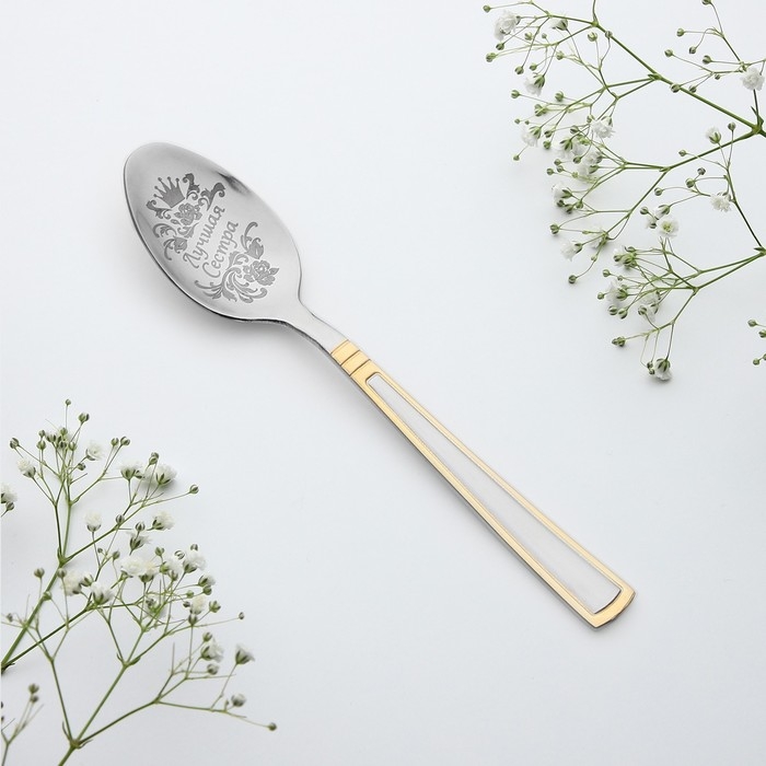 Ложка чайная в подарочной коробке "Лучшая сестра", 2,9 х 15,2 см изготовлена из нержавеющий стали, узор нанесен на черпак при помощи лазерной гравировки, – это позволяет использовать подарок по прямому назначению. Сувенир преподносится в индивидуальной подарочной упаковке с красочным дизайном.