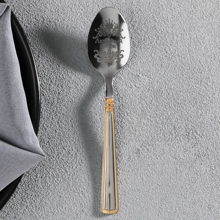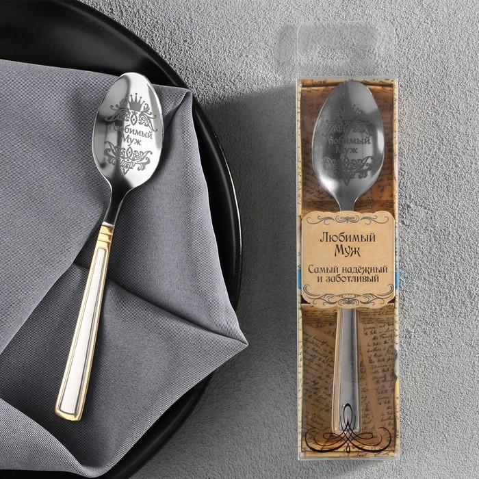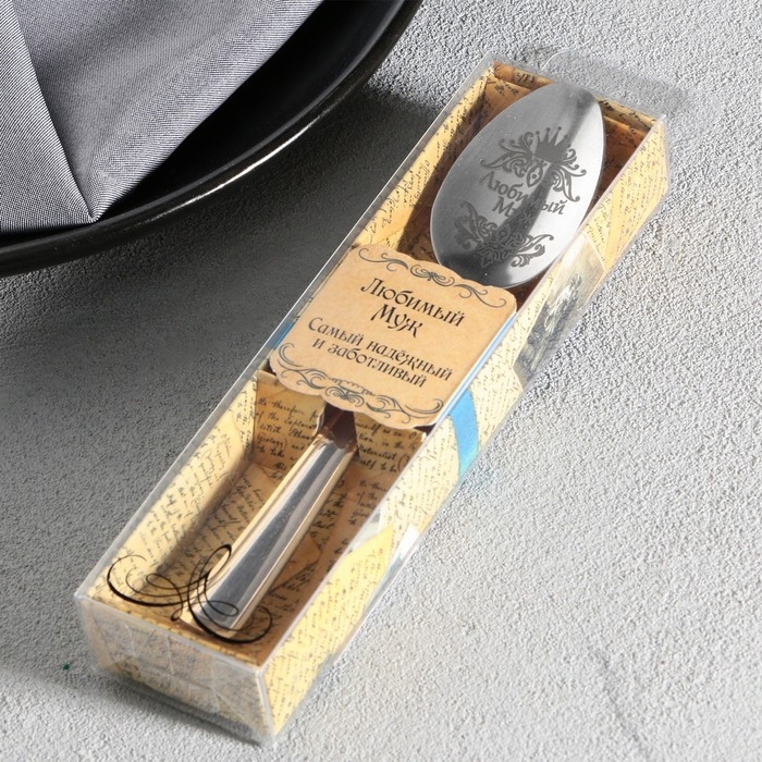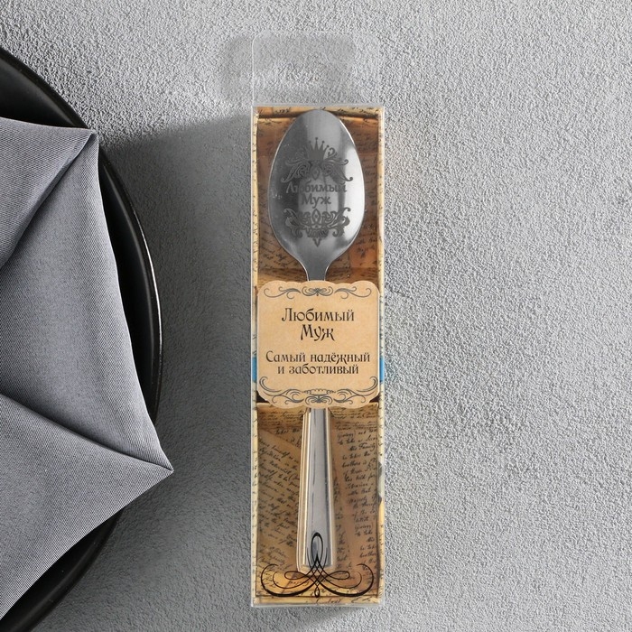 Ложка чайная с гравировкой «Любимый муж», в подарочной коробке, 3 х 14 см.
