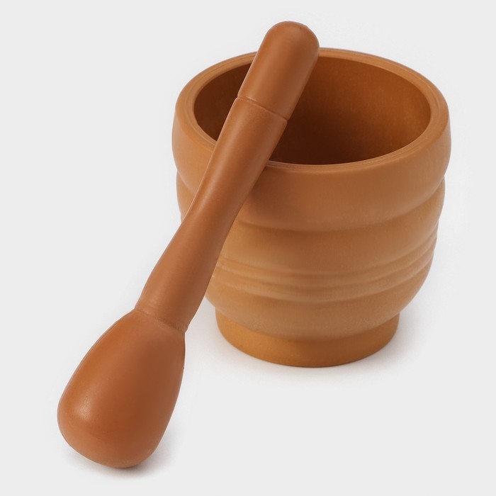 Ступка с пестиком Доляна «Кирпичный камень», 250 мл, 10,5×20 см, цвет коричневый