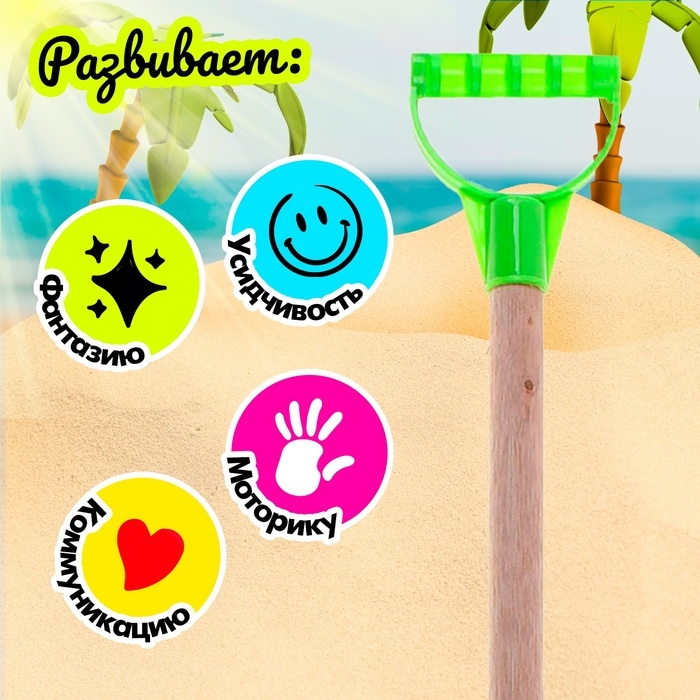 Играя с лопаткой, кроха разовьёт моторику рук, мышление и воображение, ведь юный скульптор сам придумывает формы построек и увлекательные сюжеты для игр с песочком.