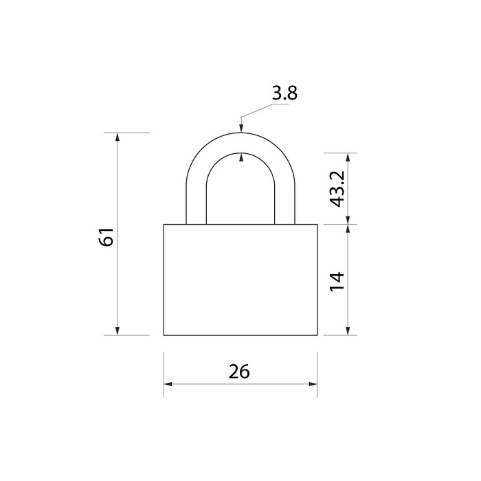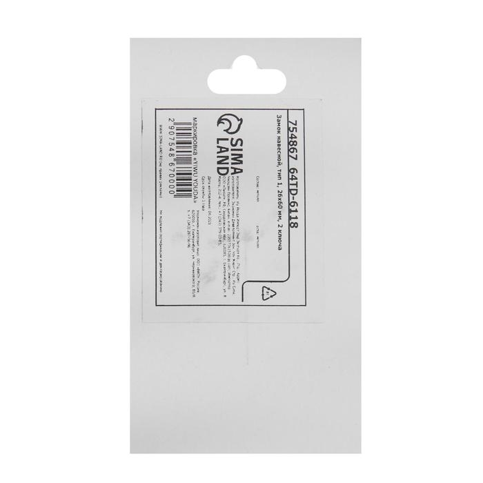 Замок навесной, тип 1, 26х60 мм, 2 ключа