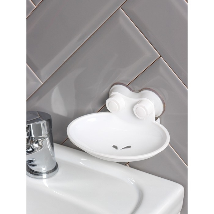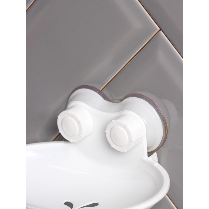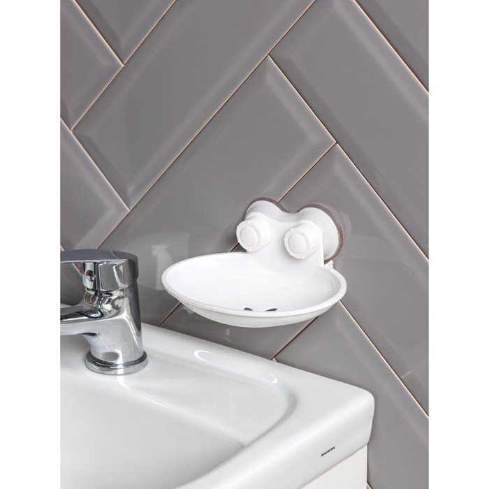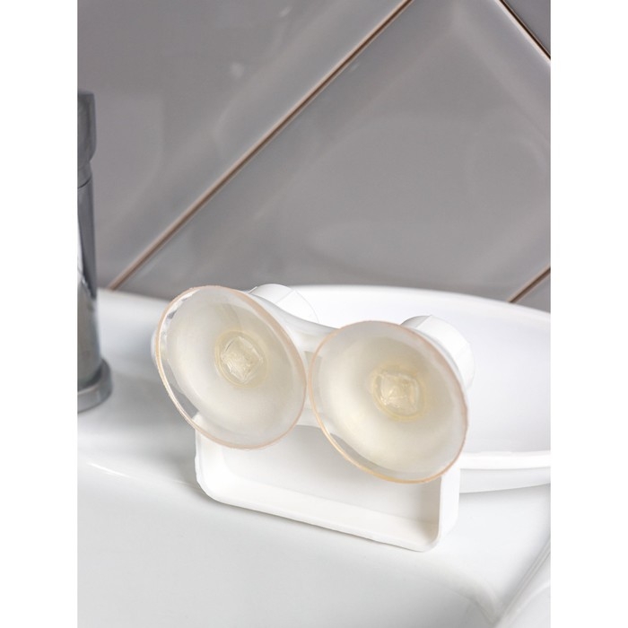 Мыльница на присосках, пластик, 15×11×6,5 см, цвет белый