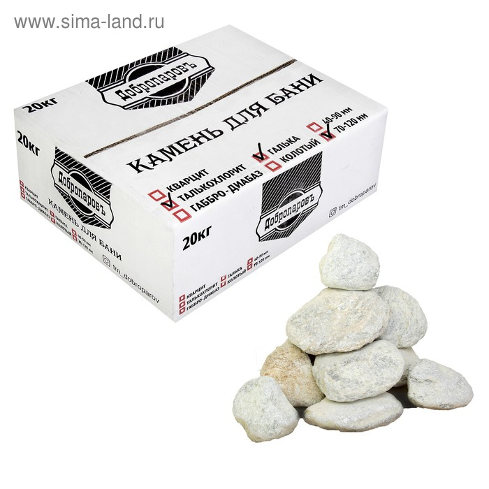 Камень для бани "Талькохлорит" галтованный, коробка 20 кг, фракция 70-150 мм "Добропаровъ"