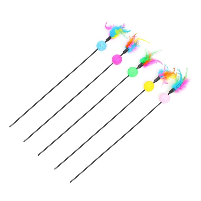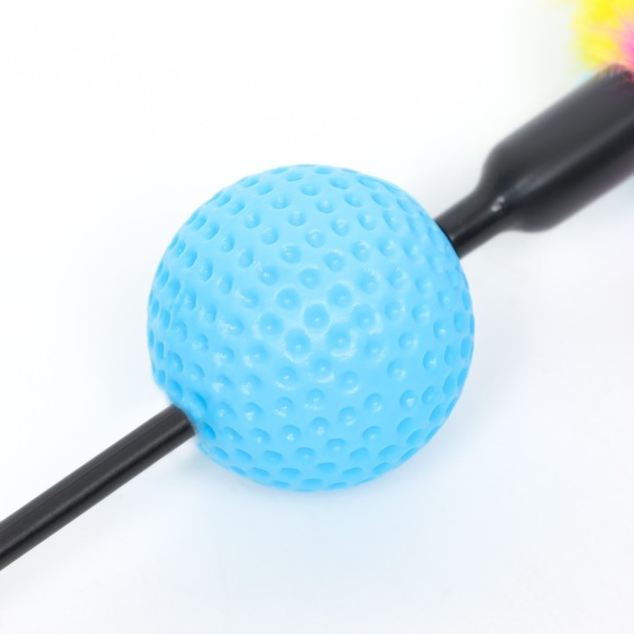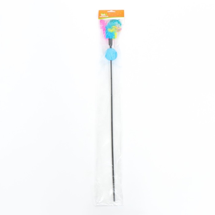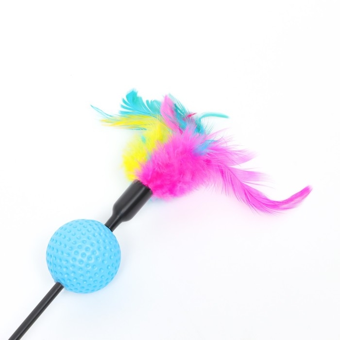 Дразнилка с цветным шариком и перьями, 49 см, палочка микс цветов