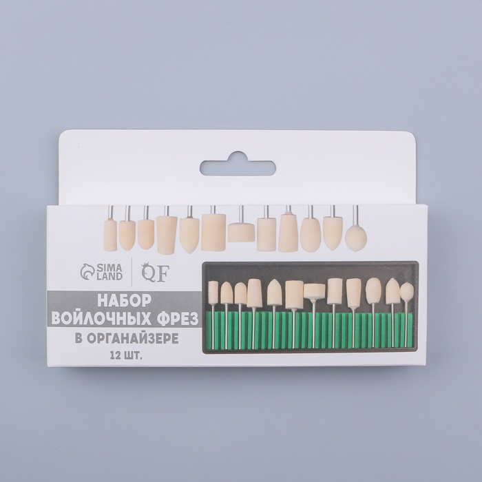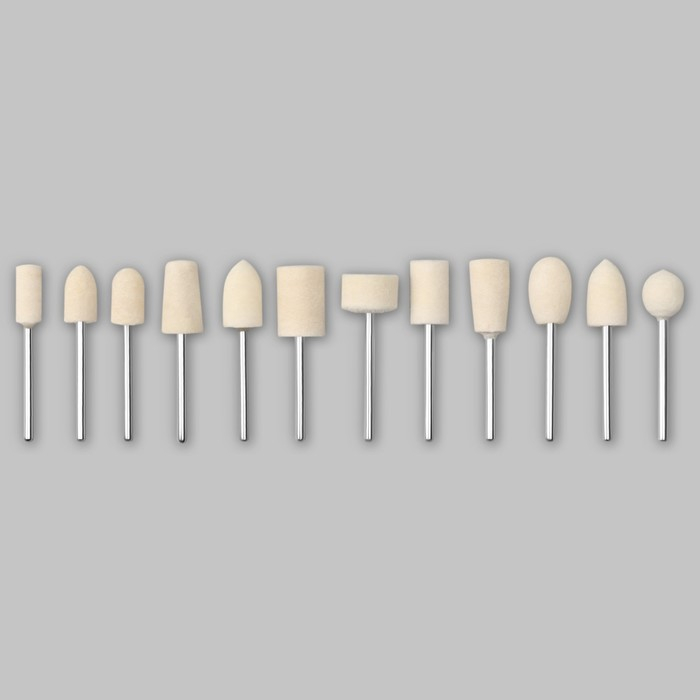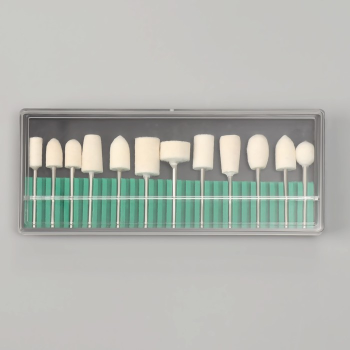 Фрезы войлочные для маникюра в пластиковом органайзере, 12 шт