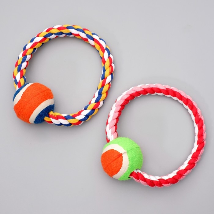 Игрушка тренировочная канатная "Круг с мячом", 120 г, микс цветов