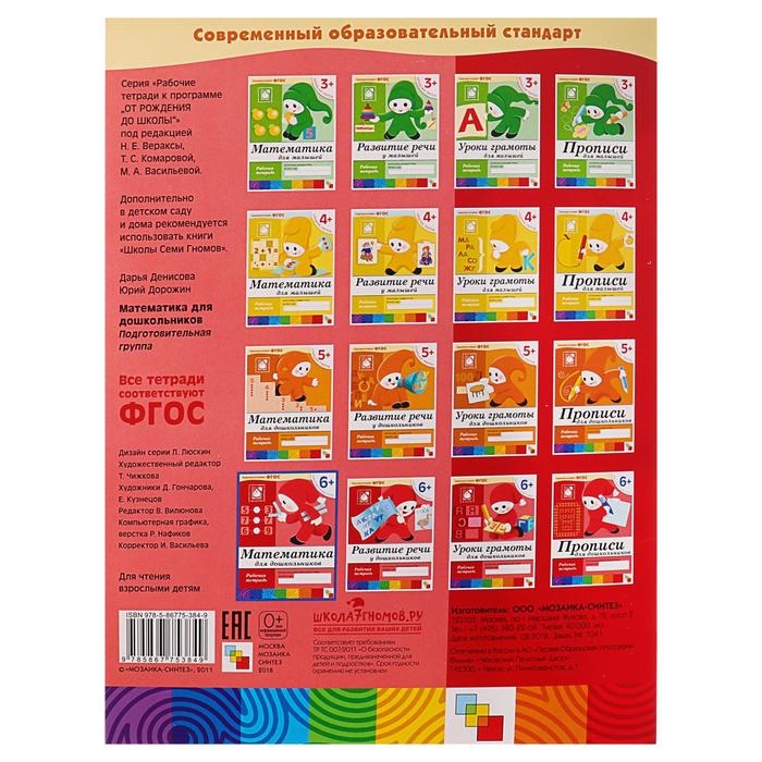 Рабочая тетрадь «Математика для дошкольников», подготовительная группа, Денисова Д., Дорожин Ю.
