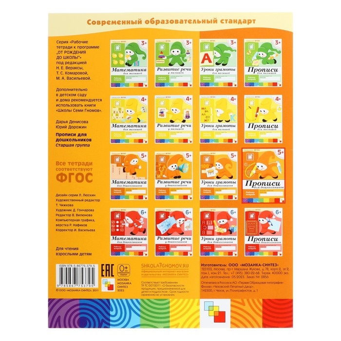 Рабочая тетрадь «Прописи для дошкольников», старшая группа, Денисова Д., Дорожин Ю.