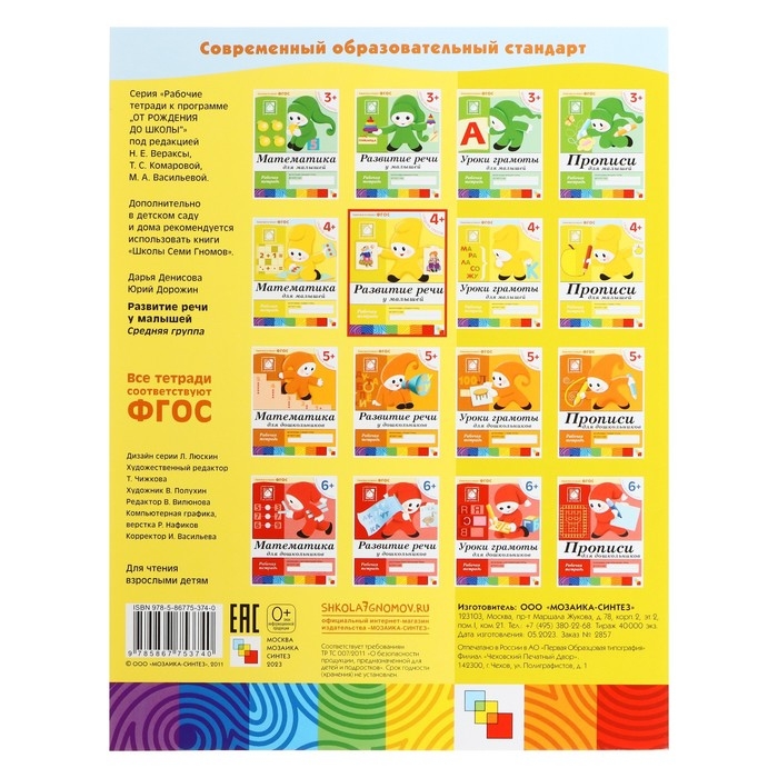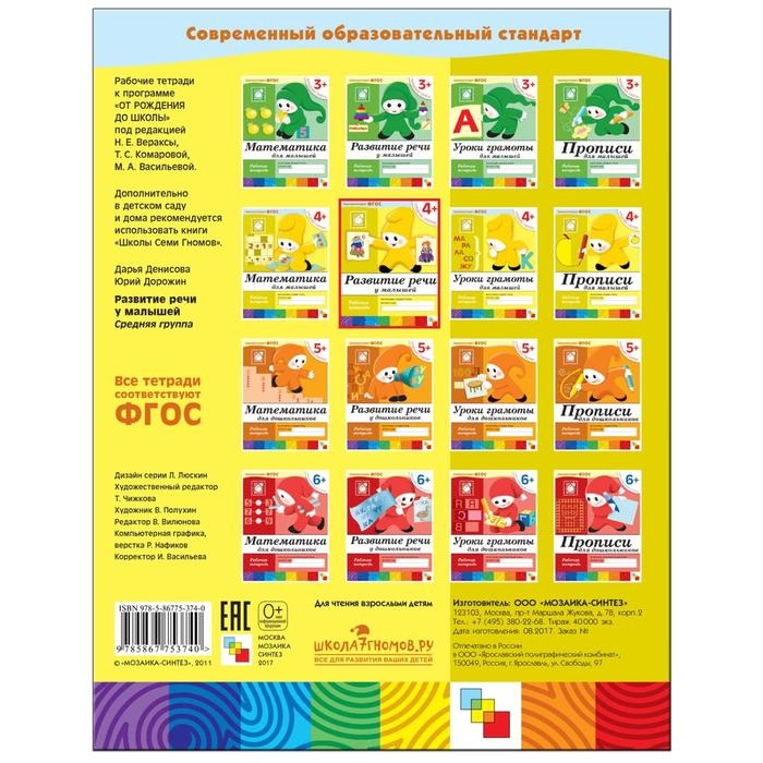 Рабочая тетрадь «Развитие речи у малышей», средняя группа, Денисова Д.