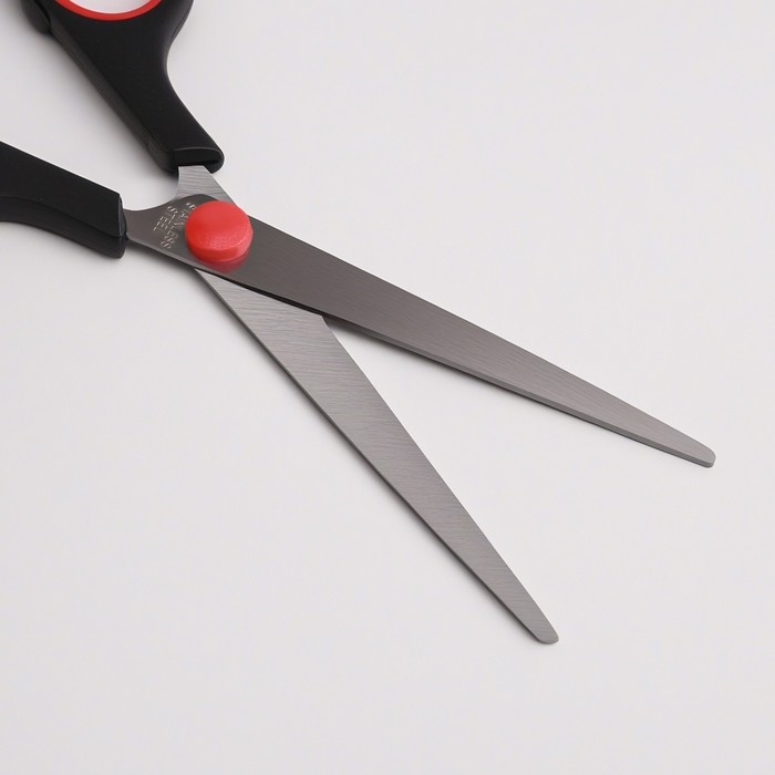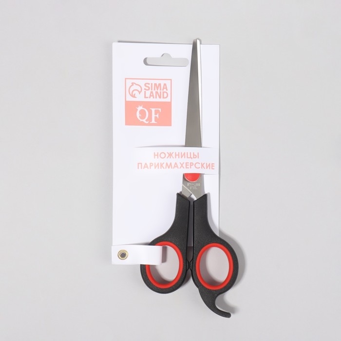 Ножницы парикмахерские с упором, лезвие — 7,5 см, цвет чёрный/красный