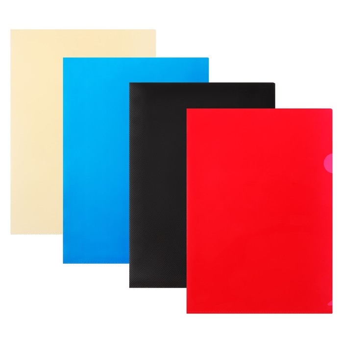 Набор папок-уголков А4, 180 мкм, Calligrata Стандарт, полупрозрачные, 4 штуки, микс