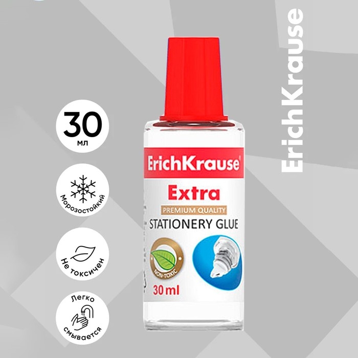 Клей канцелярский ErichKrause, 30 мл, с пластиковым аппликатором, подходит для бумаги, картона и ткани, морозостойкий