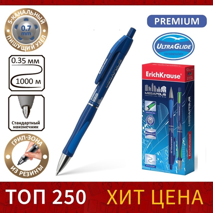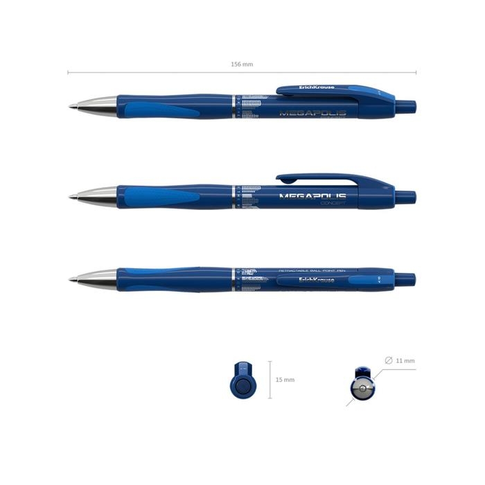 Ручка шариковая автоматическая Megapolis Concept, резиновый упор, узел 0.7 мм, чернила синие, длина линии письма 1000 метров