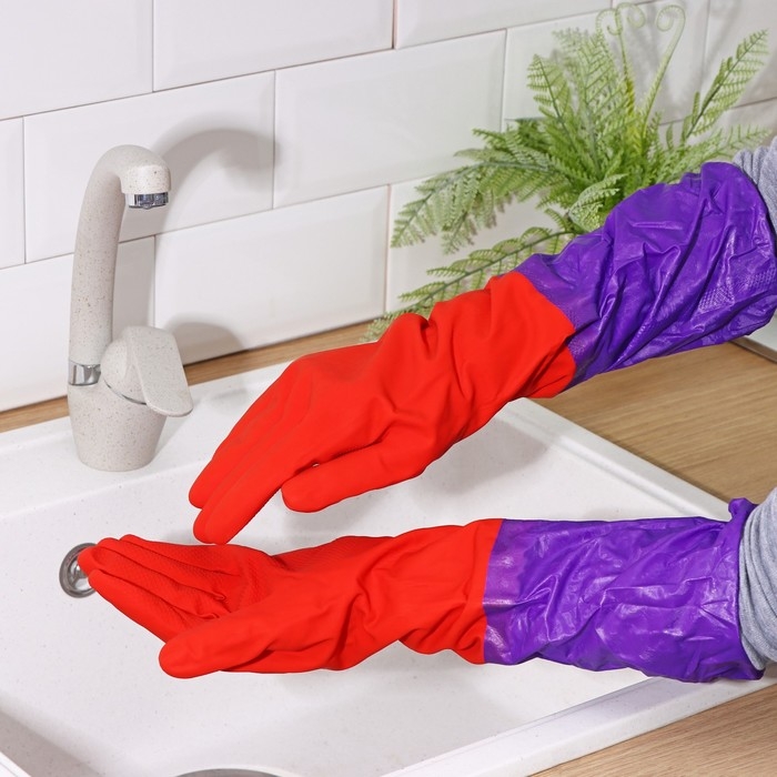 Перчатки хозяйственные Доляна, размер S, длинные манжеты, латексные, цвет красный