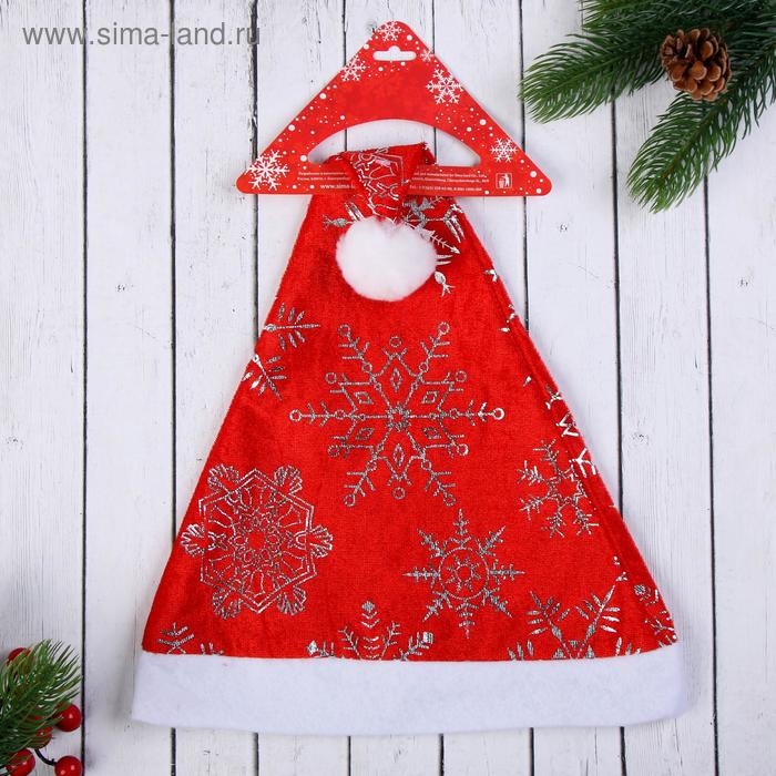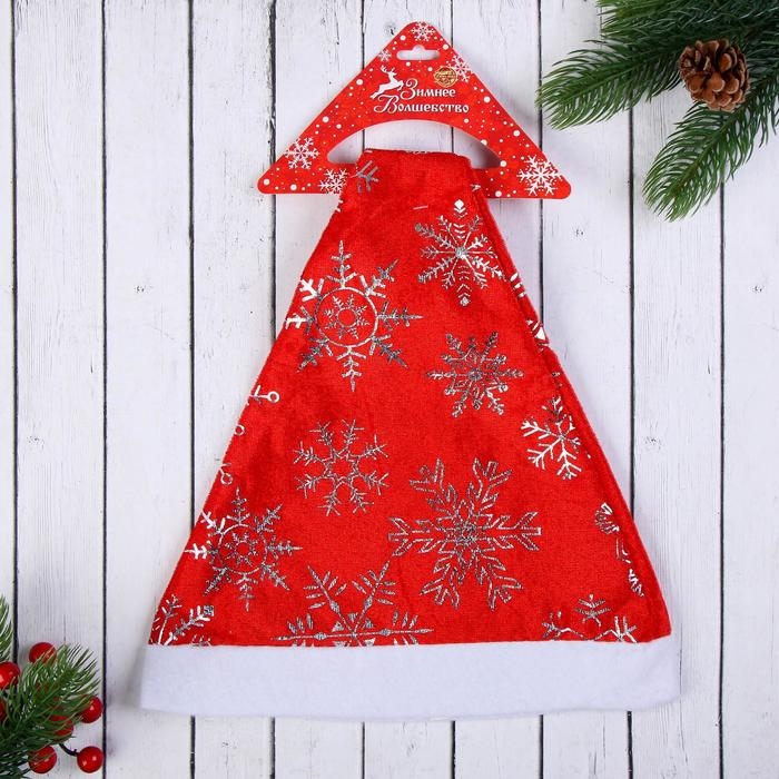 Колпак новогодний "С Новым годом" снежинка кайма, 27х36 см, красный