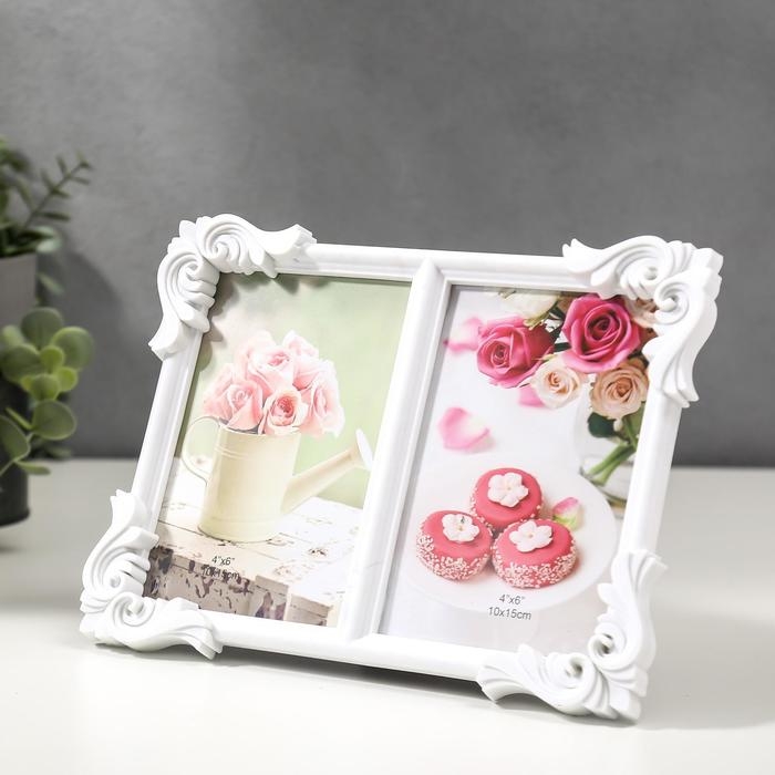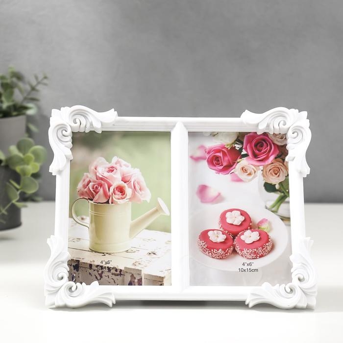 Фоторамка пластик на 2 фото 10х15 см "Корона" белая 30х28 см