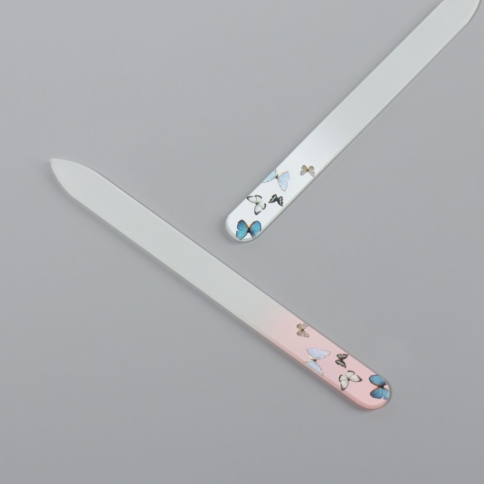 Пилка стеклянная для ногтей «Бабочки», 14 см, в чехле, цвет МИКС