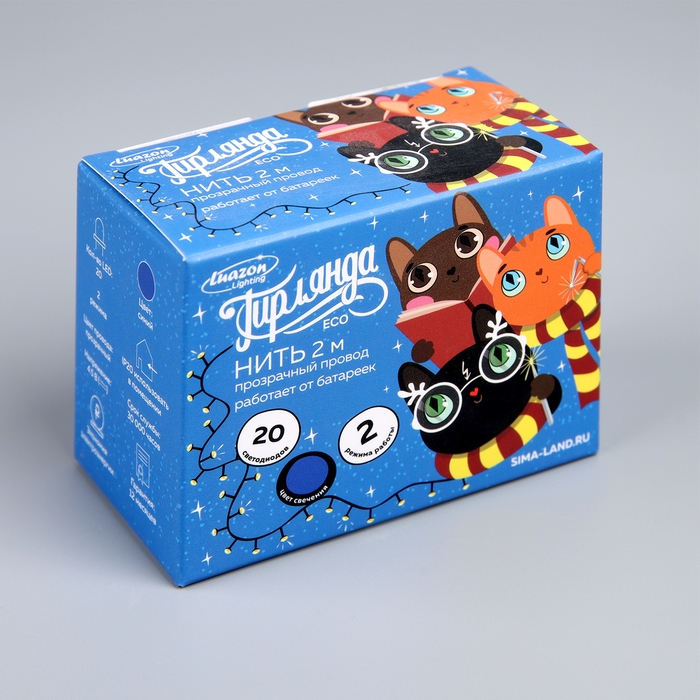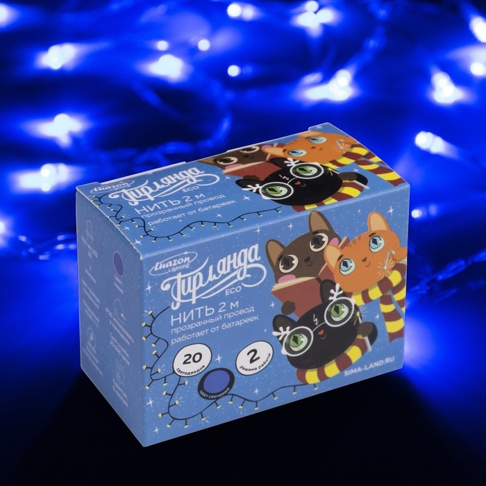 Гирлянда «Нить» 2 м, IP20, прозрачная нить, 20 LED, 2 режима, батарейки AAх3 (нет в комплекте), свечение синее