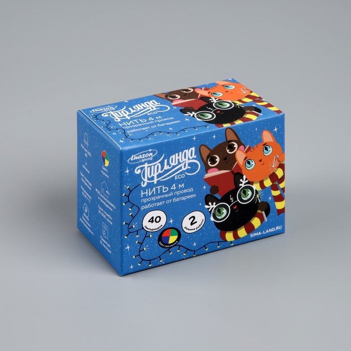 Гирлянда «Нить» 4 м, IP20, прозрачная нить, 40 LED, 2 режима, батарейки AAх3 (нет в комплекте), свечение мульти