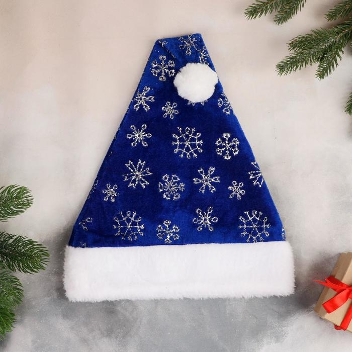 Колпак новогодний "Снегопад" с меховым кантом, 29х40 см, синий