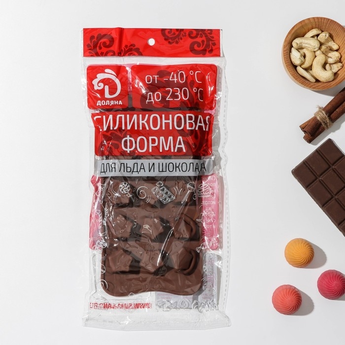 Форма для конфет и шоколада Доляна «Холодное сердце», 20,5×10×1,5 см, 15 ячеек, цвет коричневый