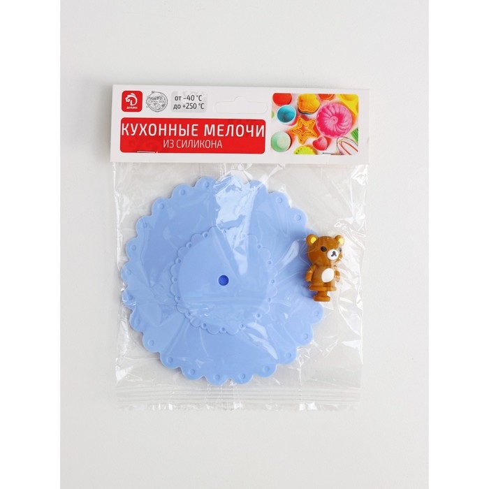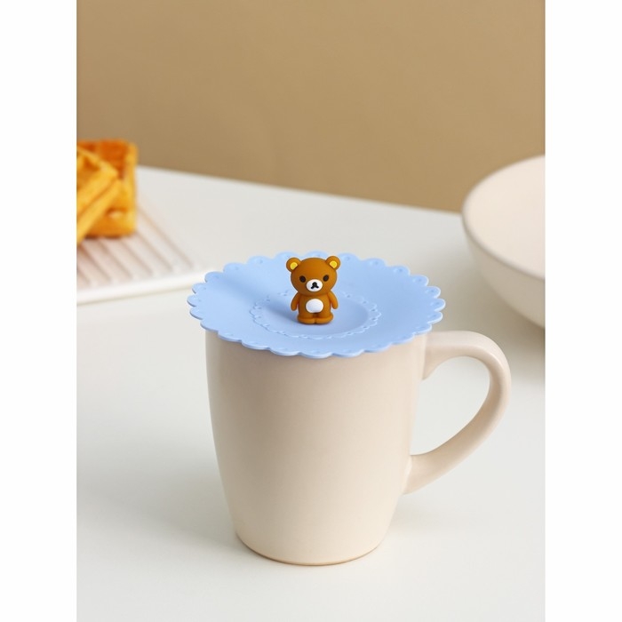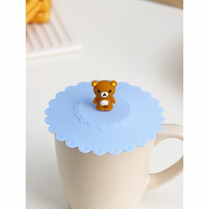 Крышка-непроливайка силиконовая Доляна «Мишка», d=11 см, цвет голубой