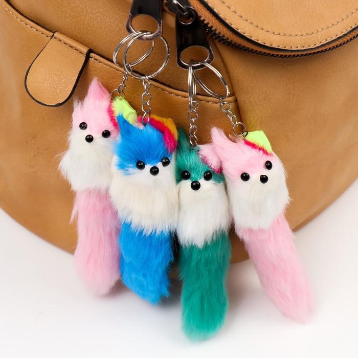 Пушистик на кольце "В радужной шляпке со стразой", МИКС