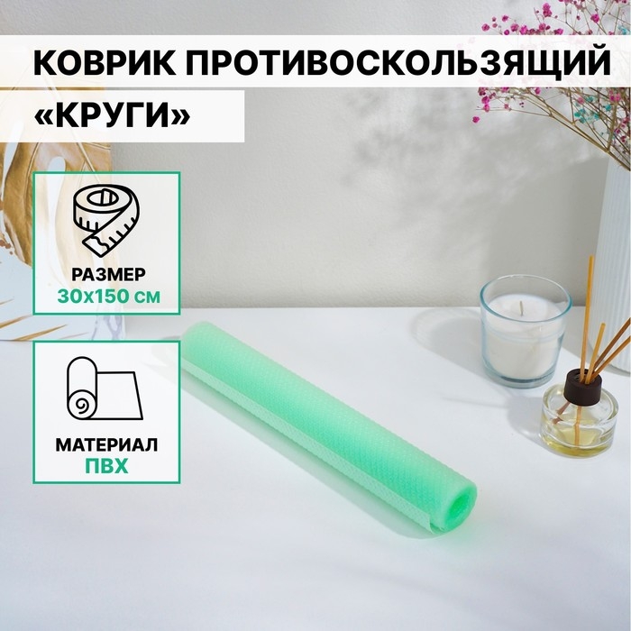Коврик противоскользящий Доляна «Круги», 30×150 см, цвет прозрачный зелёный