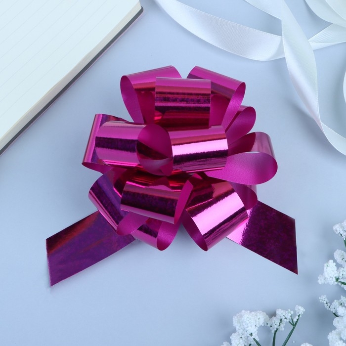 Бант-шар №3 голография, цвет розовый