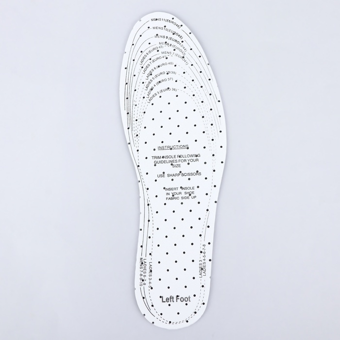 Стельки для обуви, универсальные, с подпяточником, дышащие, р-р RU до 46 (р-р Пр-ля до 47), 29 см, пара, цвет белый
