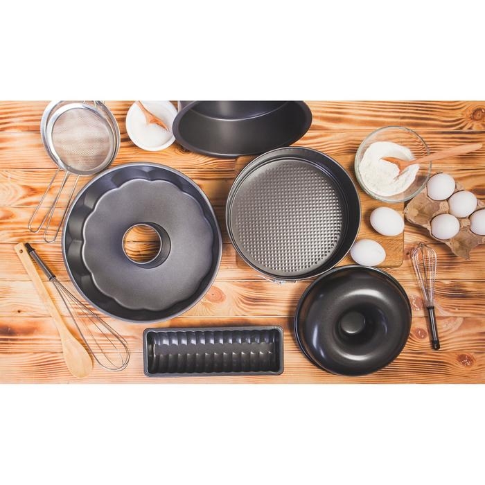 Набор форм для выпечки Доляна «Элин. Круг», 3 предмета: d=24/26/28 см, съёмное дно, антипригарное покрытие, цвет чёрный