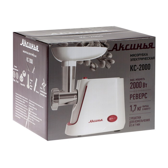Мясорубка электрическая "АКСИНЬЯ" КС-2000, 2000 Вт, реверс, 4 насадки, бело-красная